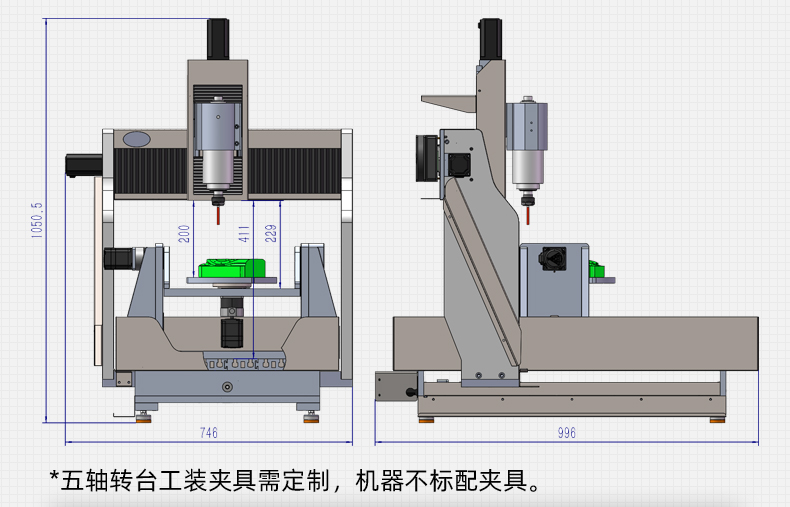 晶研桌面款搖籃五軸精雕機(jī),采用昌盛2.2KW水冷主軸,內(nèi)循環(huán)水冷系統(tǒng),干凈環(huán)保。配置C7級滾珠絲桿和H級直線導(dǎo)軌,運(yùn)行順滑。雷賽伺服電機(jī)驅(qū)動,AC兩軸諧波減速機(jī),高精度加工。JYSE4脫機(jī)電控系統(tǒng),支持5軸聯(lián)動和自動化加工。大行程,A軸-5°~100°,C軸360°,五軸300×300×300mm加工尺寸,滿足復(fù)雜鏤空及多種產(chǎn)品加工需求。