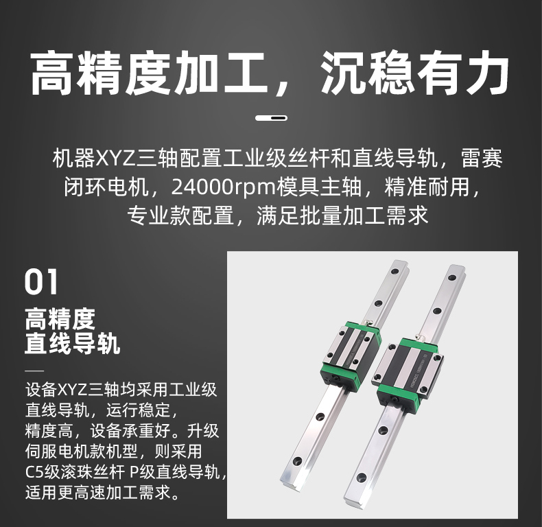 晶研方軌精雕機(jī)是一款高精度、高穩(wěn)定性的數(shù)控雕刻設(shè)備,適用于多種材料和加工需求。它配備了工業(yè)級絲桿、直線導(dǎo)軌和雷賽閉環(huán)電機(jī),確保了加工的精度和耐用性。此外,它還具有風(fēng)琴防塵設(shè)計、手動注油系統(tǒng)、沉穩(wěn)底盤和高柔拖鏈線,提高了機(jī)器的使用壽命和運(yùn)行穩(wěn)定性。該設(shè)備提供多種控制系統(tǒng)選擇,包括JYS4脫機(jī)電控系統(tǒng)、伺服+JYS4專業(yè)版脫機(jī)系統(tǒng)和Mach3控制系統(tǒng),以滿足不同的生產(chǎn)需求。晶研方軌精雕機(jī)的桌面款設(shè)計使其占地面積小,適合在有限空間內(nèi)使用,是一款適合工廠批量生產(chǎn)和自動化加工的高效設(shè)備。