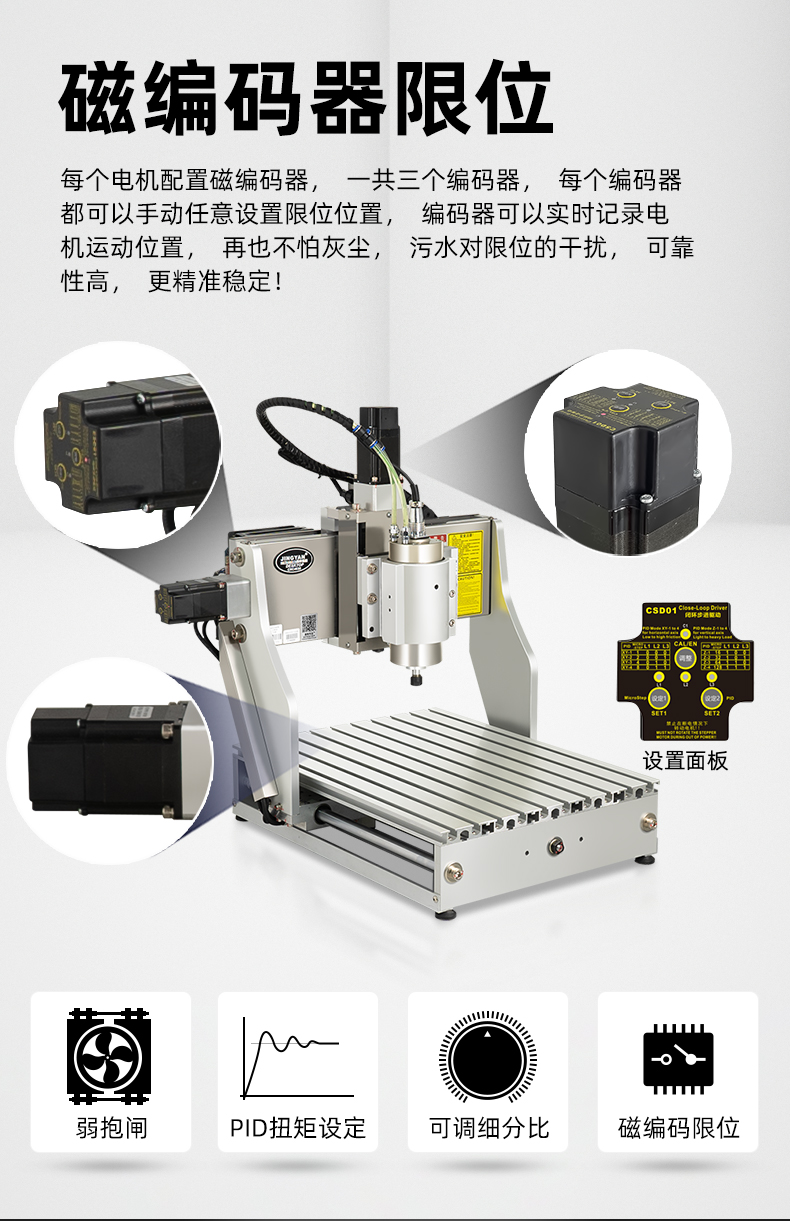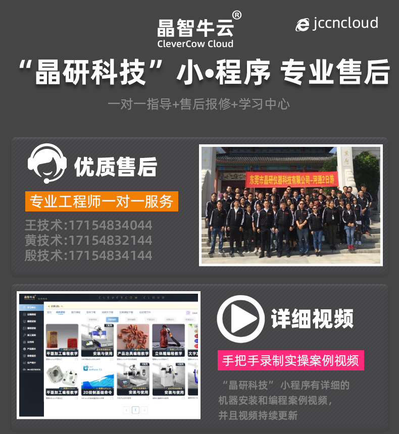 晶研M系列桌面雕刻機(jī)提供多種功率選擇,適應(yīng)不同硬度材料加工需求。其高精度編碼限位系統(tǒng)、高速閉環(huán)電機(jī)和智能驅(qū)動(dòng)卡,確保了加工的精度、速度和節(jié)能效果。此外,晶智牛云系統(tǒng)和手機(jī)小程序?yàn)橛脩籼峁┝吮憬莸慕虒W(xué)和售后服務(wù),使其成為工業(yè)應(yīng)用的理想選擇。