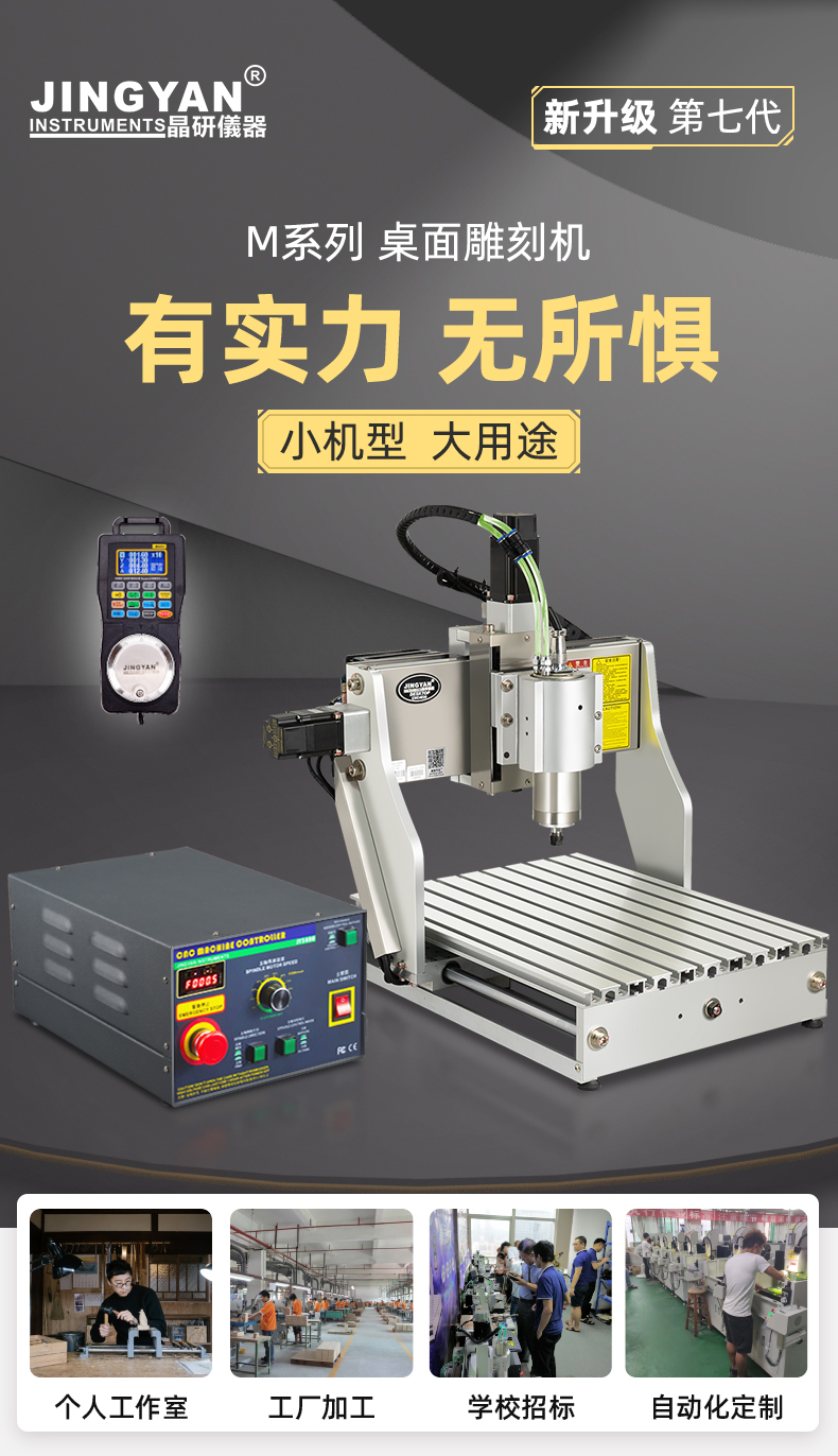 晶研M系列桌面雕刻機提供多種功率選擇,適應不同硬度材料加工需求。其高精度編碼限位系統(tǒng)、高速閉環(huán)電機和智能驅(qū)動卡,確保了加工的精度、速度和節(jié)能效果。此外,晶智牛云系統(tǒng)和手機小程序為用戶提供了便捷的教學和售后服務,使其成為工業(yè)應用的理想選擇。